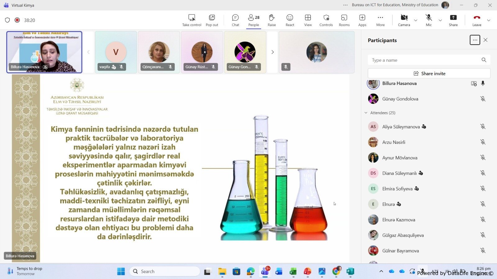 Xatırladırıq ki, “Virtual Kimya” qrant layihəsi Təhsildə İnkişaf və İnnovasiyalar üzrə IX Qrant Müsabiqəsinin qalib layihələrindəndir və Günay Gondolova tərəfindən Balakən rayon Qaravəli kənd Ə.Şirinov adına tam orta ümumtəhsil məktəbində həyata keçirilir. Layihənin məqsədi – ümumi təhsil müəssisəsində kimya fənninin tədrisində praktik komponentin gücləndirilməsi, şagirdlərin eksperimentlərə rəqəmsal formada cəlb olunması və fənnə maraqlarının artırılması məqsədilə OLabs platformasının dərslərə inteqrasiyasını təmin etməkdir. Layihə, resurs çatışmazlığı səbəbindən real laborator təcrübələrdən kənarda qalan şagirdlərə virtual laboratoriya vasitəsilə öyrənmə imkanı yaradacaq, onların analitik düşüncə və müşahidə bacarıqlarını inkişaf etdirəcək, həmçinin müəllimlərin rəqəmsal tədris mühitinə uyğunlaşmasını sürətləndirəcək.